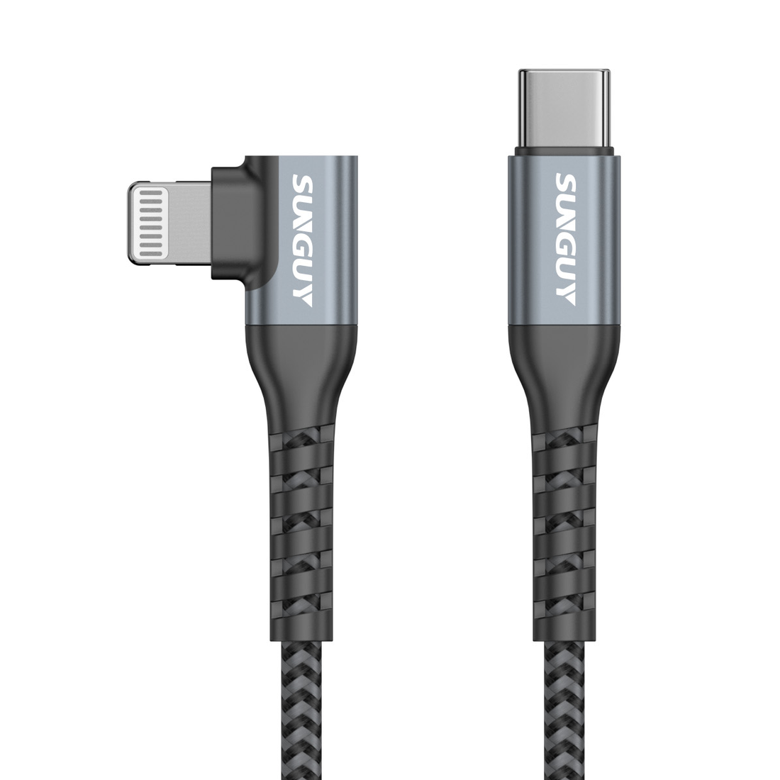 SUNGUY USB C to Lightning Cable, Right Angle, iPhone Charger Cord, B007CL