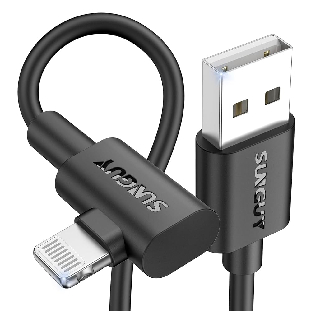 SUNGUY USB A to Lightning Cable, Right Angle, iPhone Charger Cord, B007AL