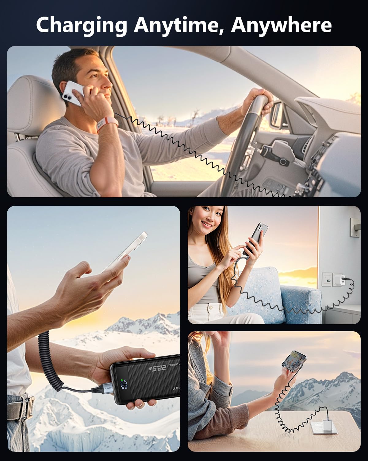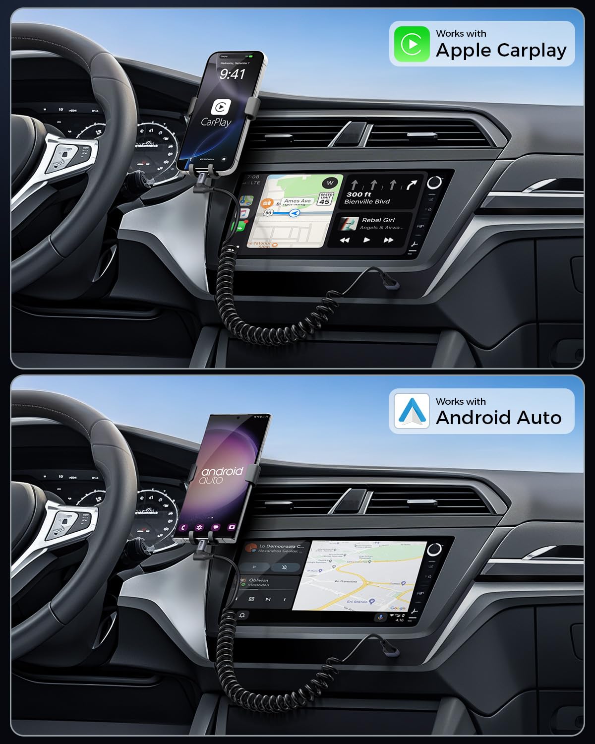 - Coiled USB C Cable for Car: The iPhone 17 CarPlay cable can work with Android Auto and Carplay. Designed with stretchable, no tangle, save space, easy storage, and easy to carry. The unstretched is 1.5ft, the max stretched length is 5ft. Comfortable length of use is 1.5ft-4ft [0.5m-1.2m].