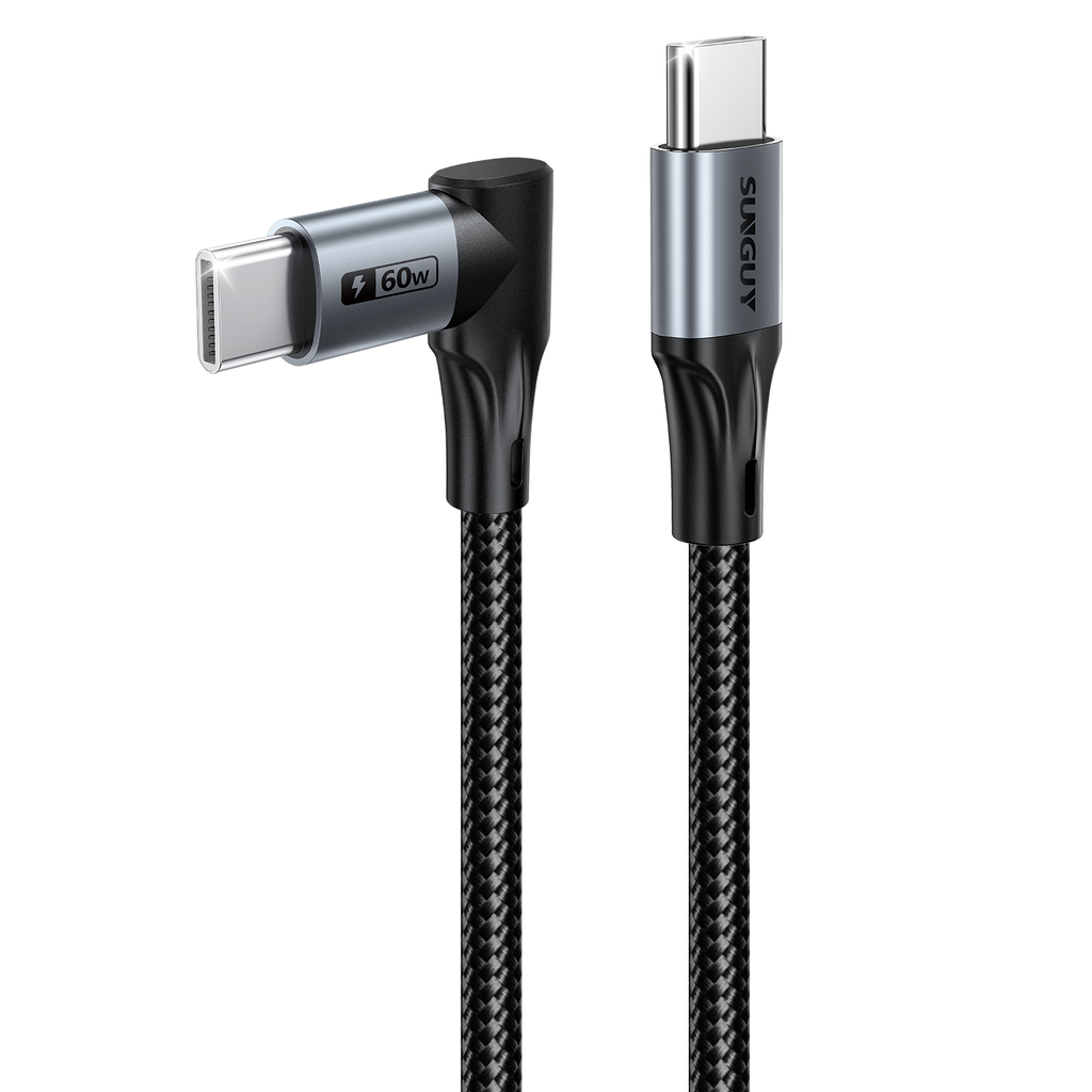 - 60W PD Fast Charging & Data Transfer: SUNGUY Right Angle USB C to USB C Cable Fast charge your USB-C laptops or smartphones with max 20V 3A current, supports max 60W Power Delivery PD fast charging. Provides transfer data speed up to 480Mbps (USB 2.0). ⚠️ Note: does not support video output.