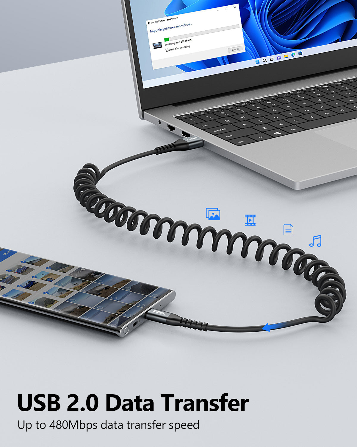 - 3A Fast Charge & Data Transfer: SUNGUY USB to USB C Cable supports fast charge and high data transfer, max current is 18W , speed of data transfer up to 480Mbps. Coiled USB C charging cable is made of high quality PU material and aluminum shell, which is flexible, easy to stretch, quick to rebound.