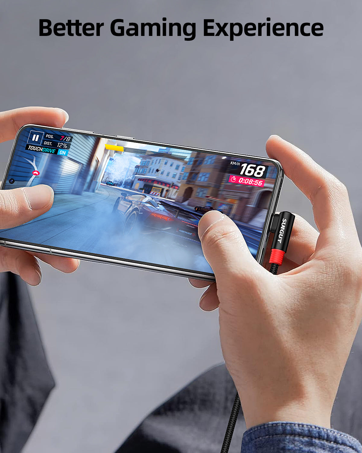SUNGUY Right Angle 3A USB C Cable Fast Charging Data Cable, B045C