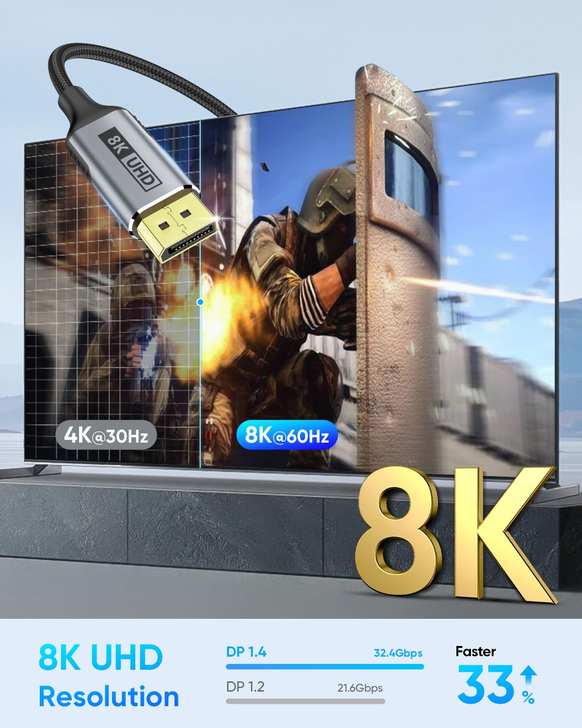 - Ultra HD 8K/4K Visuals – Say Goodbye to Blur & Lag: Supports 8K@60Hz/4K@240Hz resolution for crystal-clear spreadsheets, vibrant video edits, and ultra-smooth gaming – boosts productivity by 30% while delivering theater-quality movies and tear-free gameplay for presentations, home offices, and gaming setups.